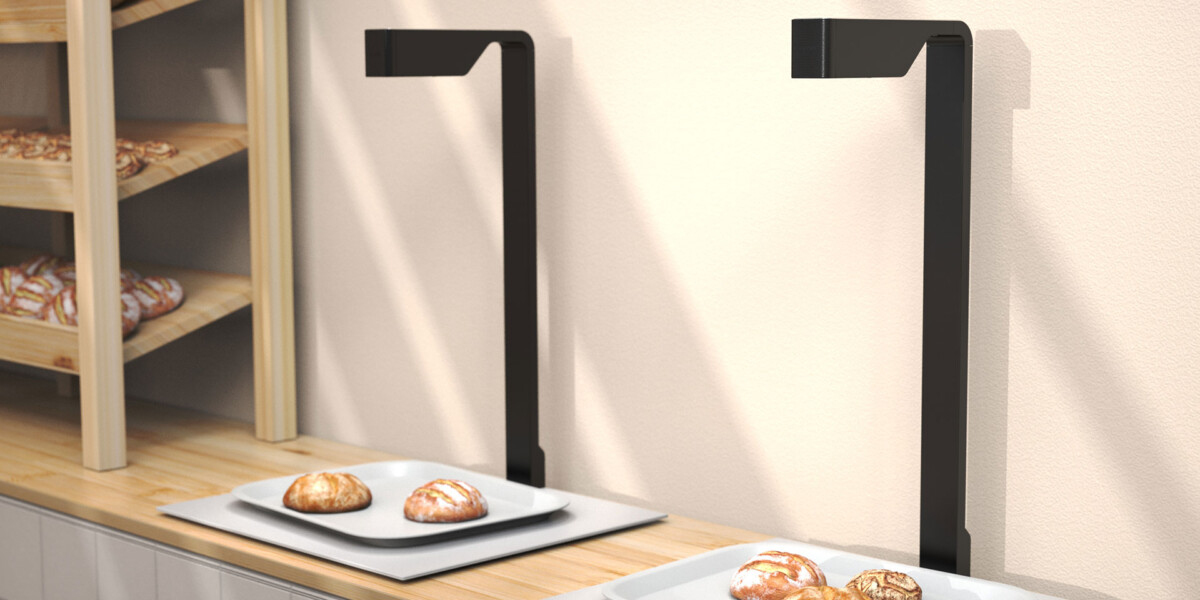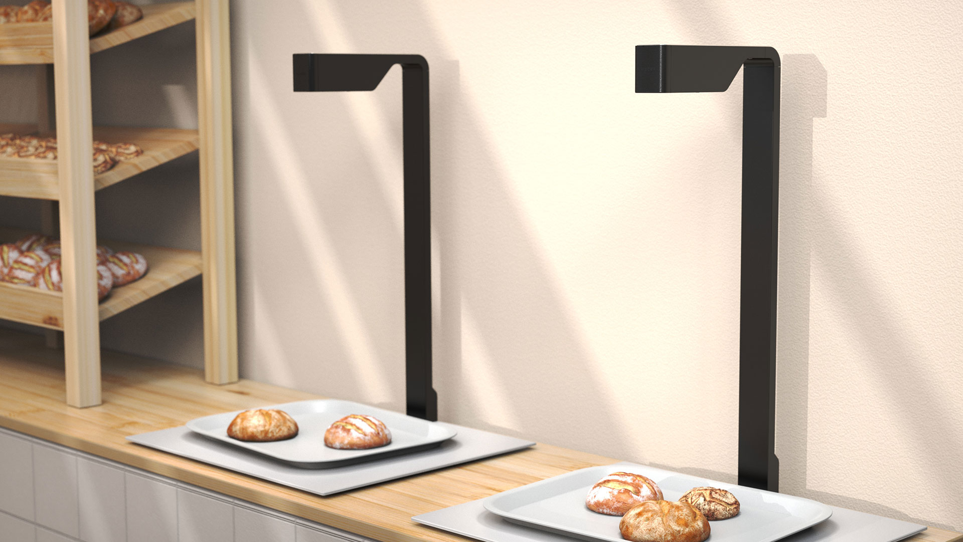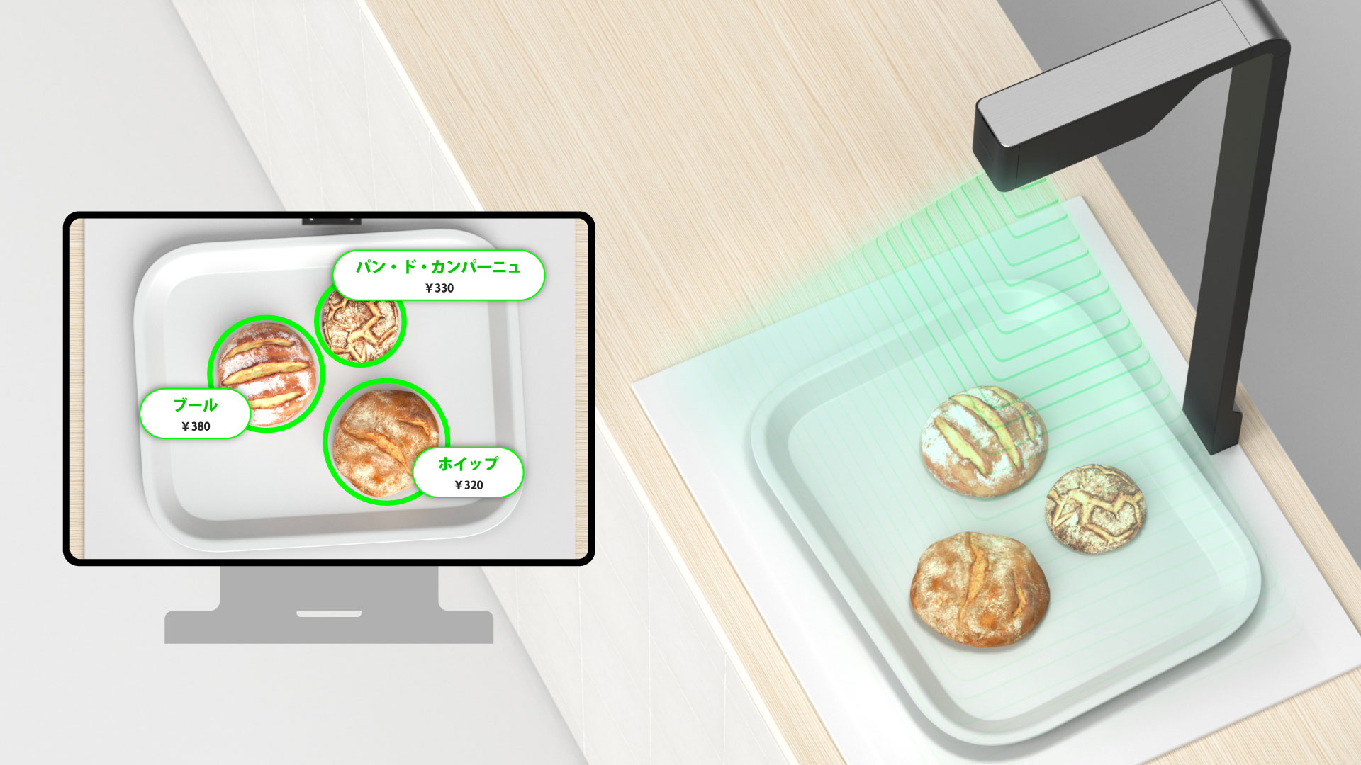 ベーカリー店舗向けに開発されたAIを活用した半自動レジシステム「ベーカリースキャン」の筐体デザイン実績例。ベーカリー業界での効率化と顧客サービスの向上を実現する革新的なシステムである「ベーカリースキャン」の意匠デザインから設計、生産サポートに至るまでをトータルでサポートさせていただきました。
